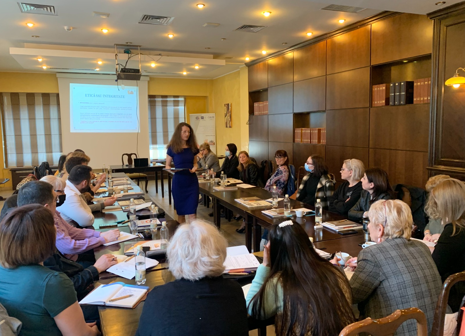 Doamna Cristina Iuliana Burchea, director executiv al ADI TRANSPORT METROPOLITAN SIBIU, Municipiul Sibiu, în calitate de formator al proiectului a susținut prezentări pe temele cuprinse în agenda program a sesiunii de formare. În prima zi doamna Burchea a prezentat principiile bunei guvernări, noțiuni legate de etică, morală și integritate și a subliniat importanța responsabilității și a comportamentului etic într-o instituție a administrației publice. S-au dezbatut diverse spețe pe dileme etice în scopul identificării unor solutii optime având drept scop creșterea responsabilității funcționarilor implicați în procesul decizional și a gradului de aplicare a prevederilor legale raportat la valorile morale individuale.